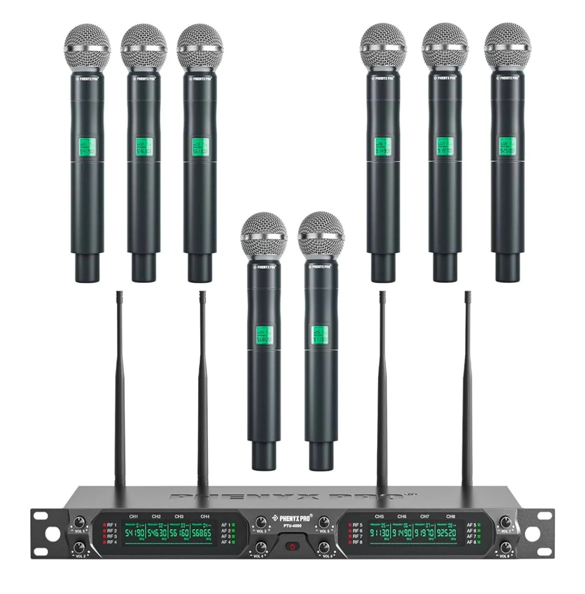 For vocal performances BackLine on Demand offers the PHENYX Pro 8-Channel Wireless Microphone System— a reliable, versatile solution for events that require multiple performers or speakers on stage. With eight handheld UHF mics, metal construction for durability, and a wide 260-foot range, this system delivers clear audio for churches, DJs, conferences, and live bands.
